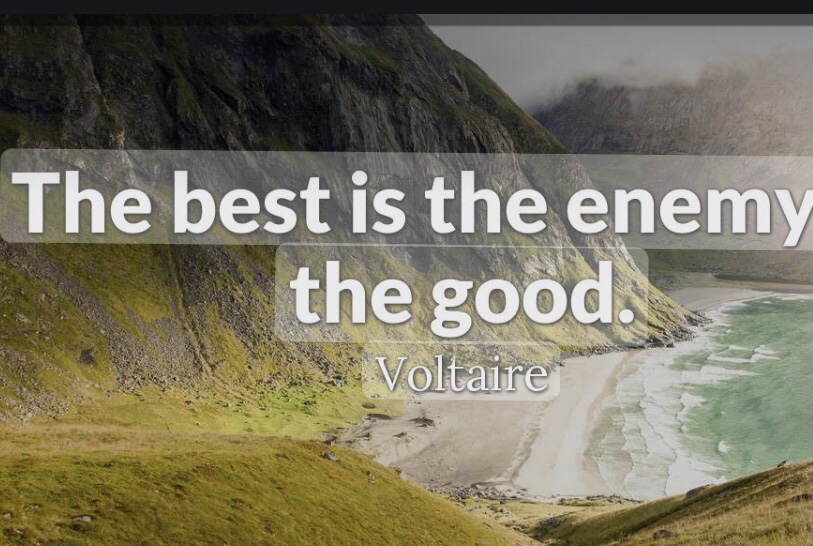 Post 0003 – Voltaire said, “The best is the enemy of good.” This is proven true in my life. For me, it looks like perfection is the opposite of done. In short, I have a difficult time completing projects. Somewhere along the way I find myself bogged down trying to do the job perfectly. Whether delivering on a perfect timeline, or waiting until all conditions are perfect before I start a project. I let my desire for doing something the perfect way keep me from performing at all. Pursuing perfect not only keeps me from starting, it also keeps me from completing a project.